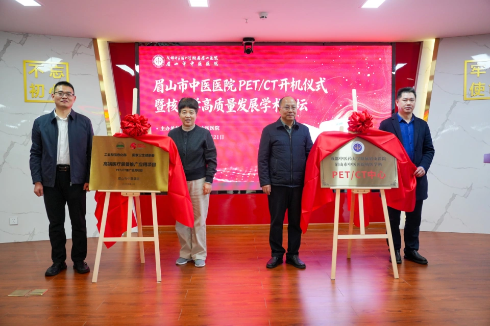 12月21日,眉山市中医医院PET/CT揭牌仪式暨核医学高质量发展学术论坛在岷东院区举行,市卫健委党委书记、主任蒋传德在仪式上讲话,我院党委书记张东致辞,活动由院长谢晓龙主持。中国医学科学院北京协和医院、首都医科大学附属北京友谊医院、首都医科大学附属北京积水潭医院等全国各大医院核医学科专家,眉山市、区卫健部门领导,市区及周边医疗机构领导参加。
