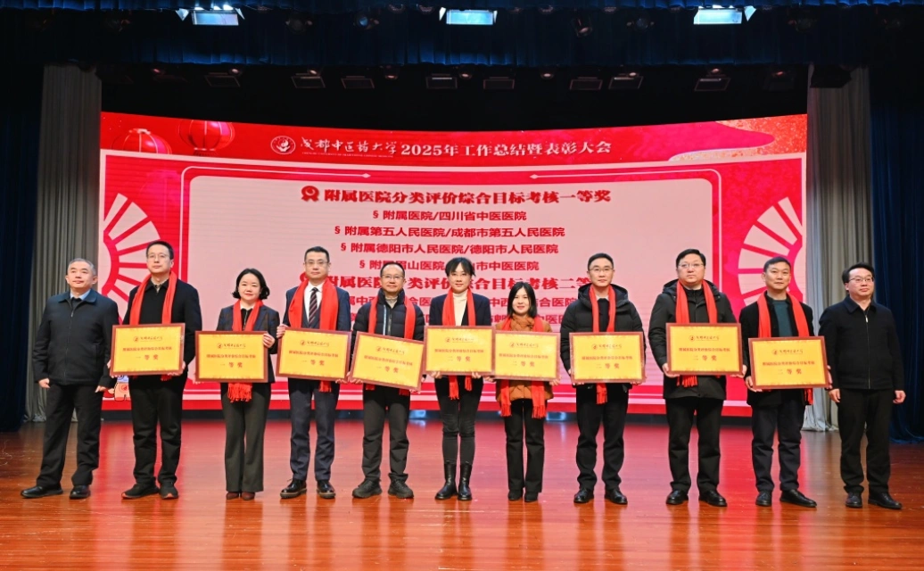 表彰仪式环节,我院凭借2025年优秀的综合表现,荣获“附属医院分类评价综合目标考核一等奖”。这一荣誉,是成都中医药大学对我院在过去一年中狠抓内涵建设、强化过程管理、全面完成各项目标任务的高度肯定。